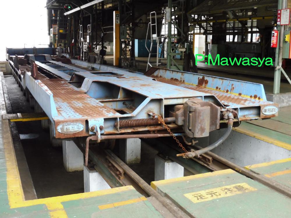 全体的に低床化した構造であり、トラックはランプウェイから自走して積載されます。車体色は青15号(インクブルー)としました。試験を行い、技術的な問題は解決しましたが、トラックを鉄道車輛限界内に収める必要があり、積荷高さやトラックの大きさに制限が生じる問題を解決する事が出来ず、そのまま終了。現在もJR貨物に籍を有しており、復活の日を待っています。