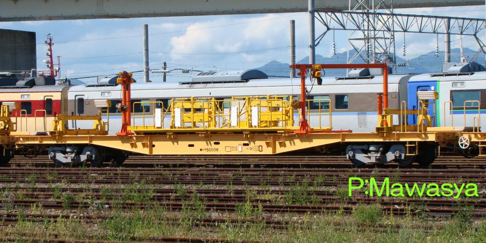主に200mロングレール輸送を行う編成の端部に連結され、レールを送り出すエプロン車として使われる番代。編成内に組み込まれる車輛もあり、その場合は受台が設置されています。