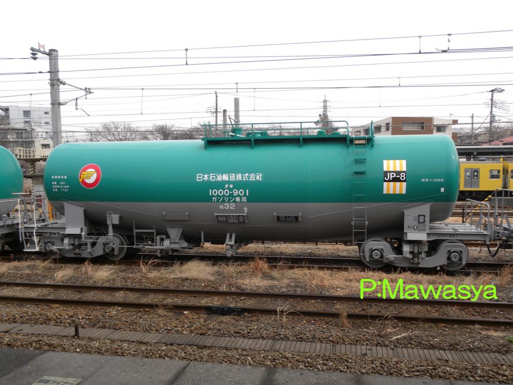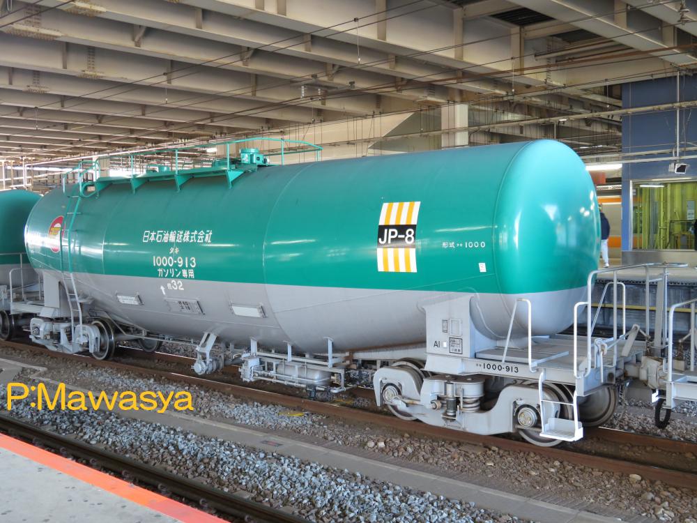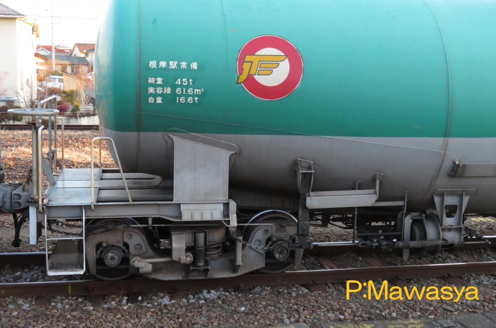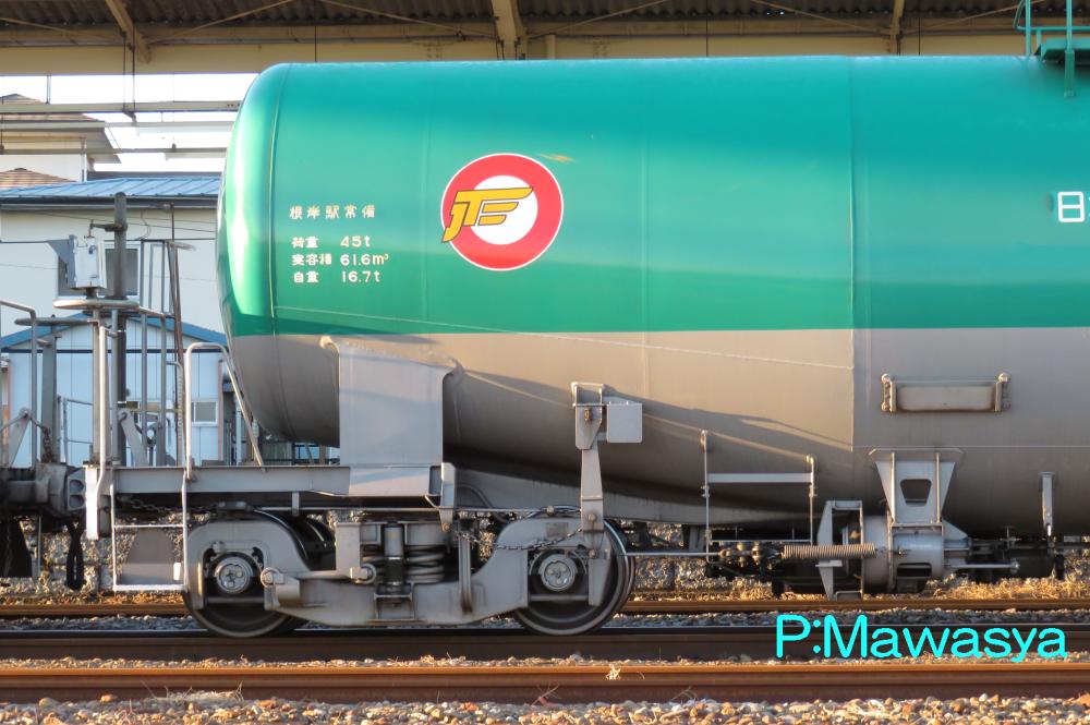 890番代あたりから930番代にかけての一部の車輛は在日米軍基地(横田基地)へジェット燃料を輸送しています。全国各地の在日米軍基地への燃料輸送はありましたが、現在唯一残るのが横田基地です。タンク車はアメリカ国防省燃料管理課が借り受けています。タンク体に向かって右側に「JP-8」と書かれていますが、これはジェット燃料の名前。JP4というジェット燃料に代わって平成2年から使われている燃料。発がん性物質のベンゼンや神経毒のn-ヘキサンを減らし、高い安全性となっている燃料です。