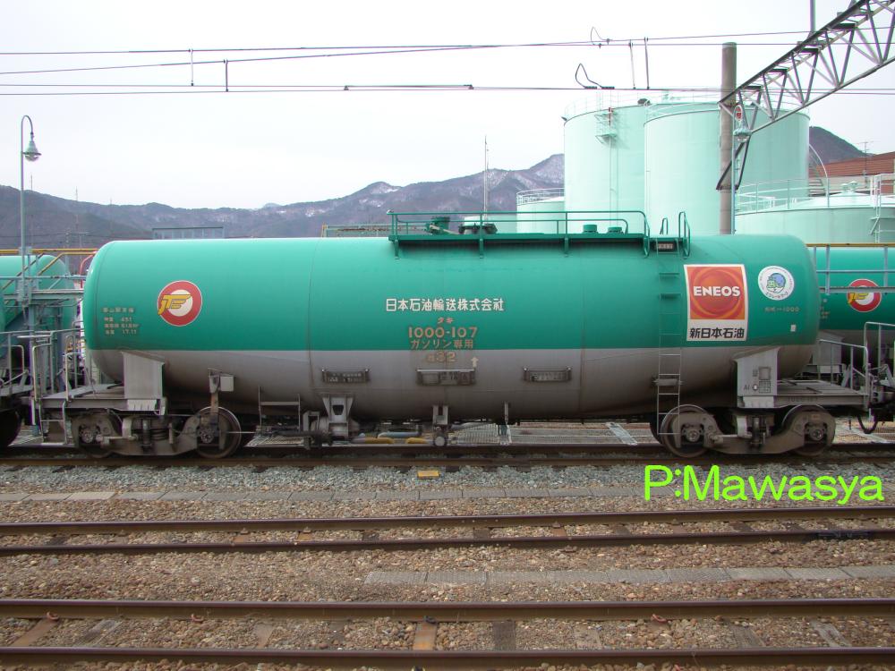 | タキ1000-107(3-1位側):日本石油輸送 | タキ1000-303(2-4位側):日本オイルターミナル |