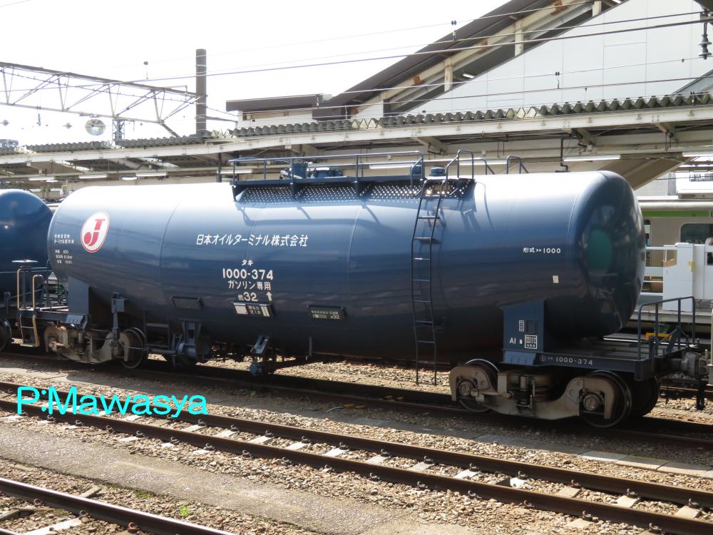 | タキ1000-374(1位側):日本オイルターミナル | タキ1000-353(4位側):日本石油輸送 |