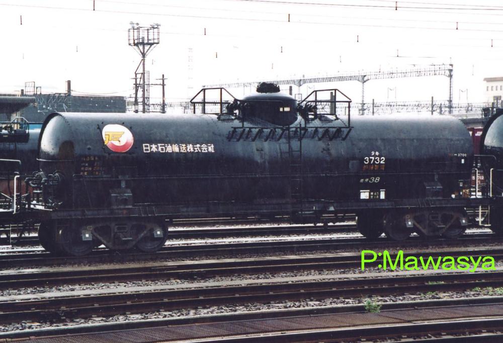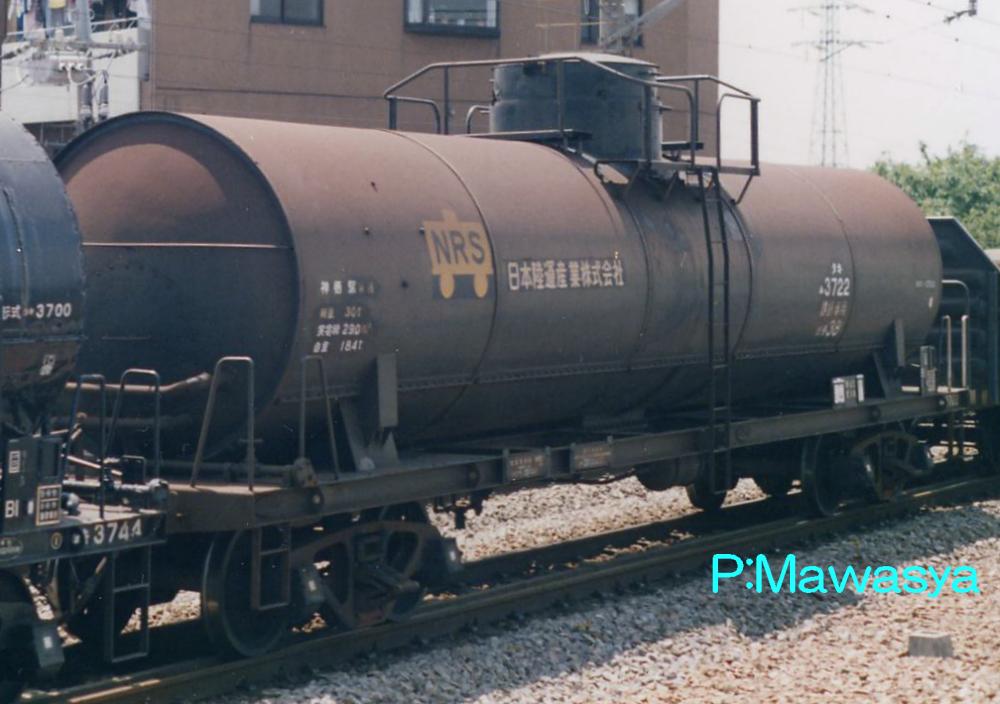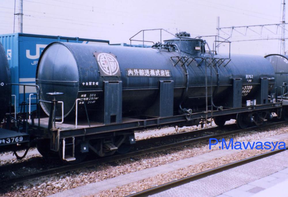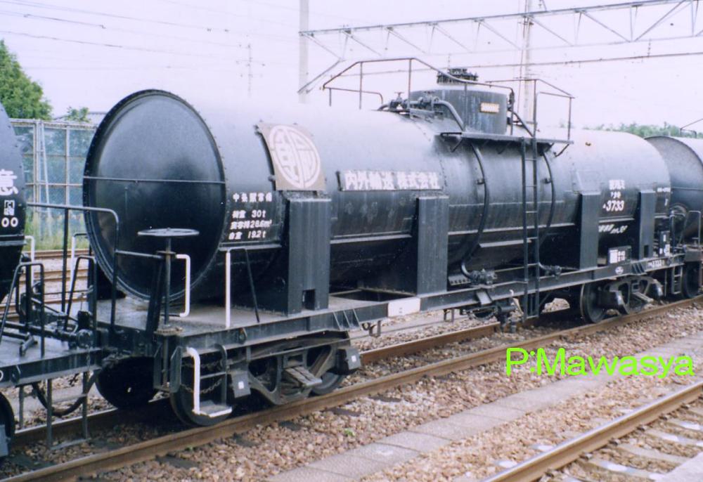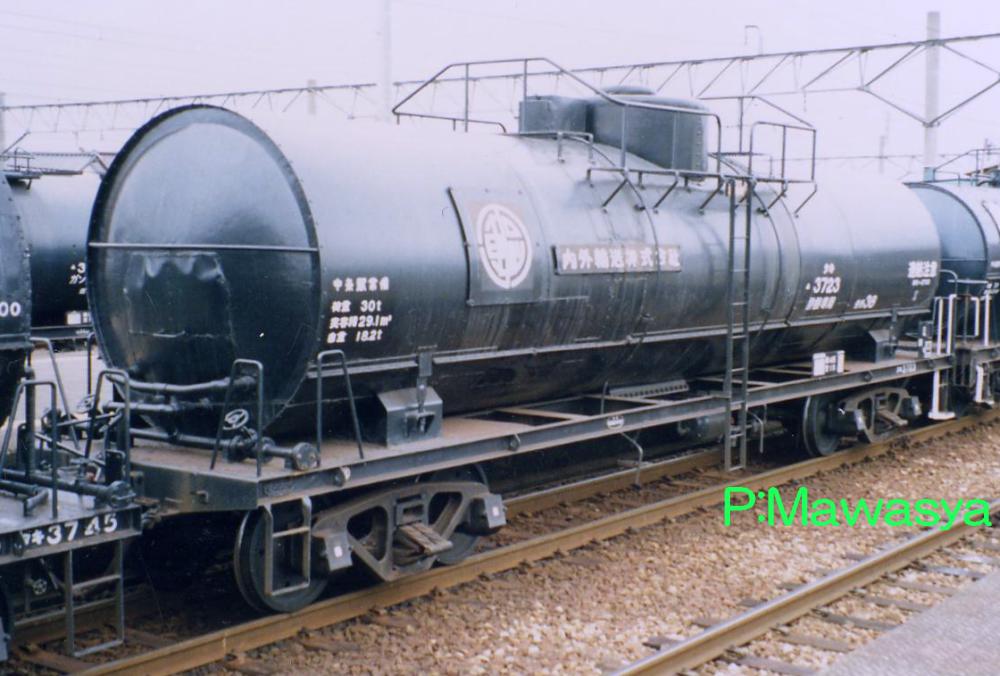 キセを持たず、純アルミ製タンク体を持つ車輛。受台はタンク体を保護する為、大型のものが8つ設置されています。タンク体は地肌色(銀色)と黒色がありました。内部は補強も兼ねて波除け板が設置されています。写真はリニューアル工事を受けた晩年の姿で、台車をTR41A形式からTR225形式に履き替えていた車輛です。