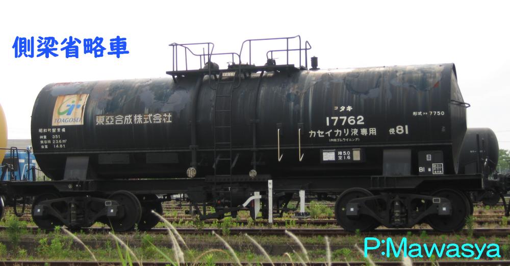 側梁省略ではありませんが、タンク体を異径胴タンク体で製作し、枕梁と枕梁の間にある中梁を省略し、開いた空間に落とし込む方法になっています。この構造を持つタンク車に対して、側梁省略構造や中梁省略構造とは言いません。