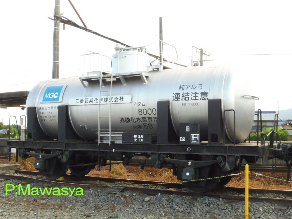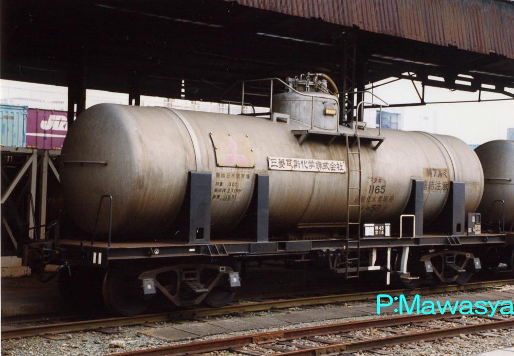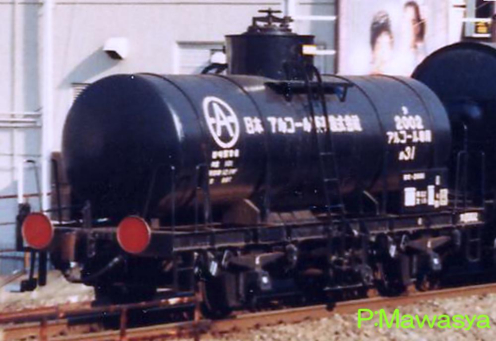昭和37年に登場し、15両が製作された過酸化水素専用車で、初めての形式です。積荷が分解するのを防ぐ為、純アルミニウム製タンク体が特徴です。アルミニウム製タンク体は強度が弱いので、タンク体には「純アルミ」、「連結注意」の標記がされています。受台が大型なのも特徴にあります。平成15年に形式消滅しています。