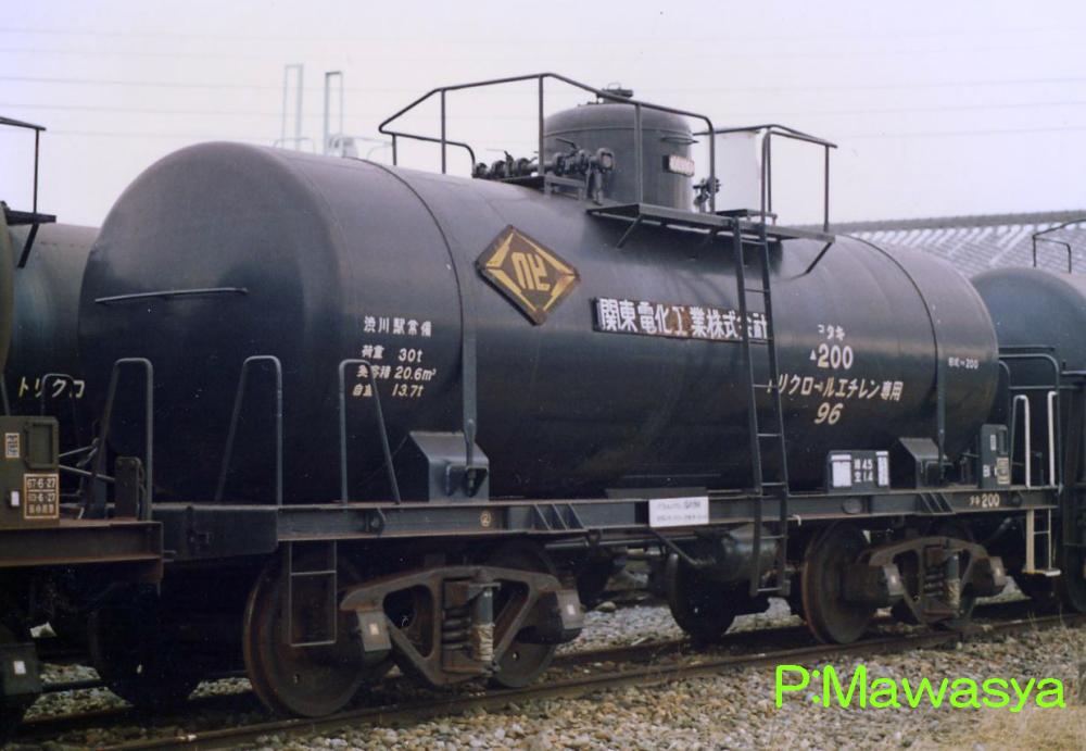 トリクロールエチレン専用車では初めての形式で、昭和38年に登場しました。10両あり、200、210、211番の3両は新製車。202、203、212~216番の7両はタキ2600形式からの改造車となっています。(201番、204~209番は欠番)