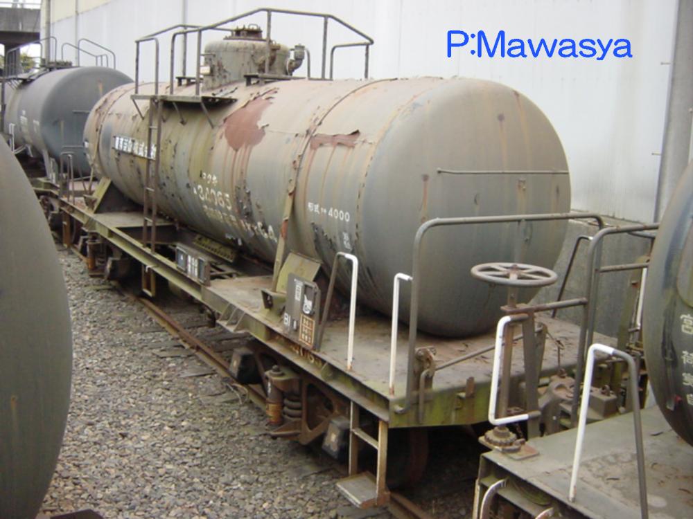 両数は多いのですが、形態的には鏡板部の形状など変化は少ないのが特徴です。ポピュラーなタンク車として知られており、その中には在日米軍基地への燃料輸送を担っていた車輛がありました。6桁の大きな数字は米軍の管理番号との事。