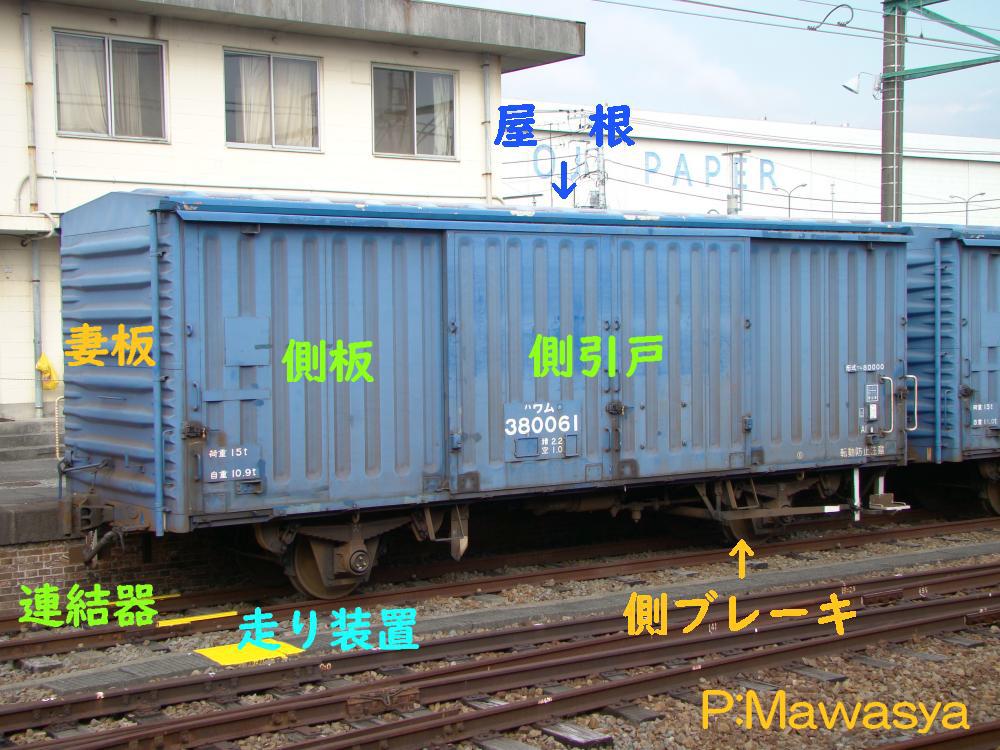有蓋車の各部の基本的な名称は写真の通りになります。