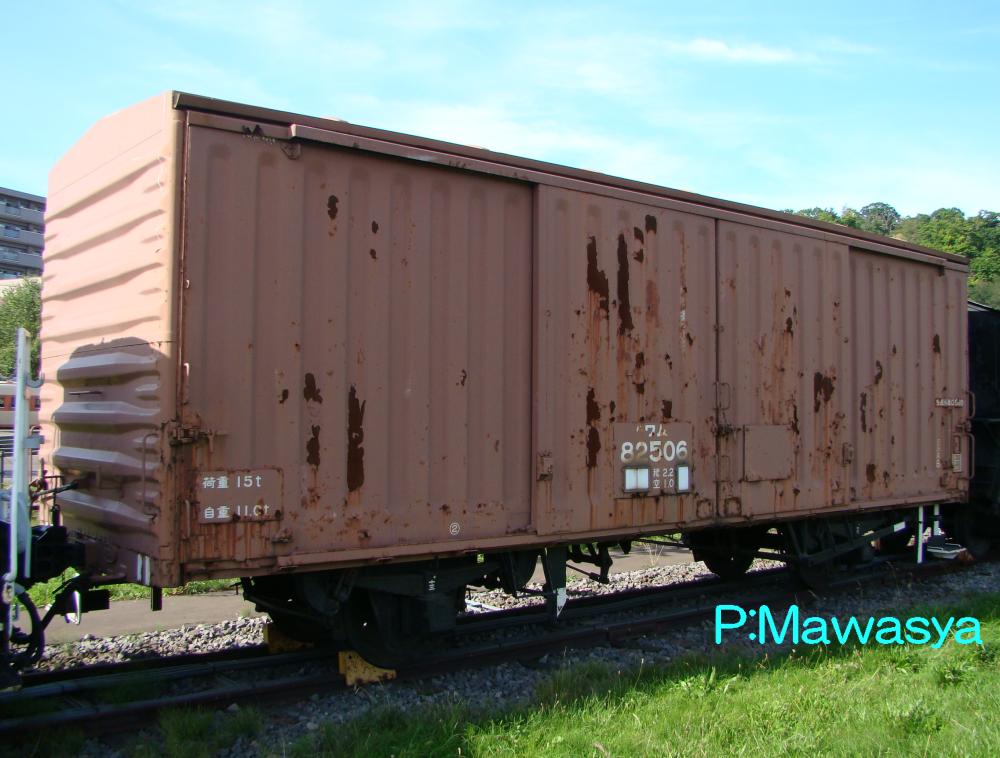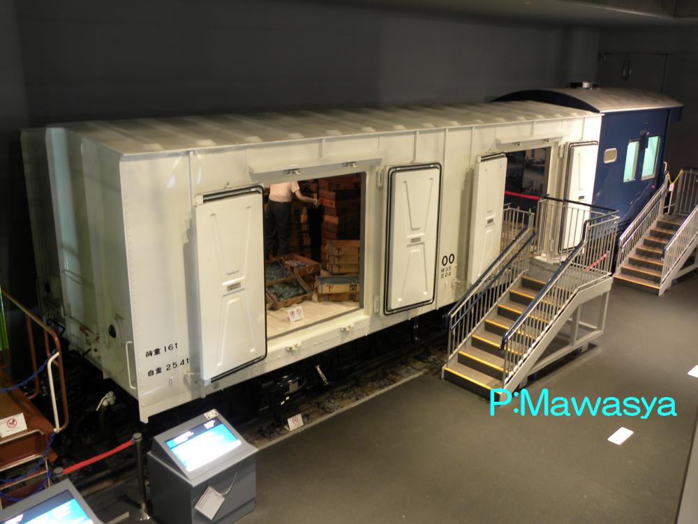 写真は京都鉄道博物館に保存されている車輛で、荷役用引戸が鋼製、走り装置がシュー式の後期車です。