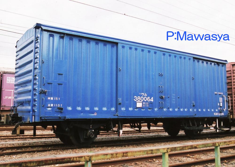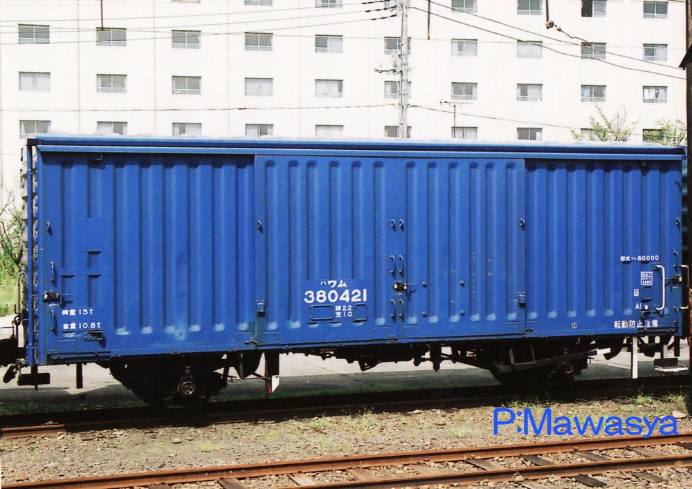 初代ワム80000形式よりも車長を延長し、容積を増やし、パレットの重さを含めて荷重15tを実現。15t積み有蓋車を示す「ワム」にパレット荷役用を示すための小文字「ハ」が添えられ、「ハワム」(当初はパ)と表記され、現場でもハワムやワムハチの愛称で呼ばれ、パレット荷役の評判の良さも相まって、改良を加えながら増備。鮮魚、ガラス、ビール、木材チップ等の物資別適合貨車も加わり、昭和56年までに26605両も製造され、二軸貨車のベストセラーとなりました。