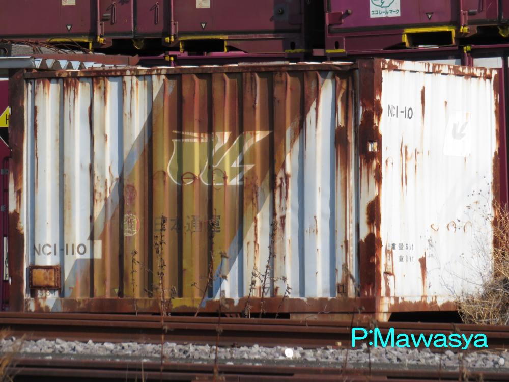 JR貨物に籍を移した後の様子。日本通運のロゴやペリカンマークなどは消され、JR貨物のステッカーが貼られています。NC1形式は東急大阪製(写真)と富士重工業製(右上のNC1-938)の2つに大別でき、脚が異なるといった違いがありました。平成19年に新型コンテナへの置換え、老朽化などにより形式消滅しています。