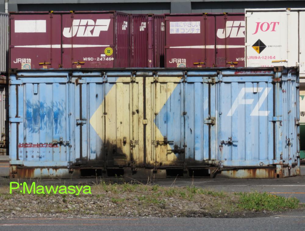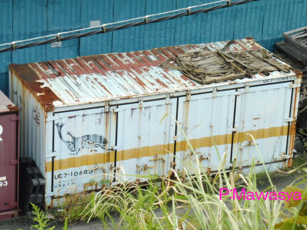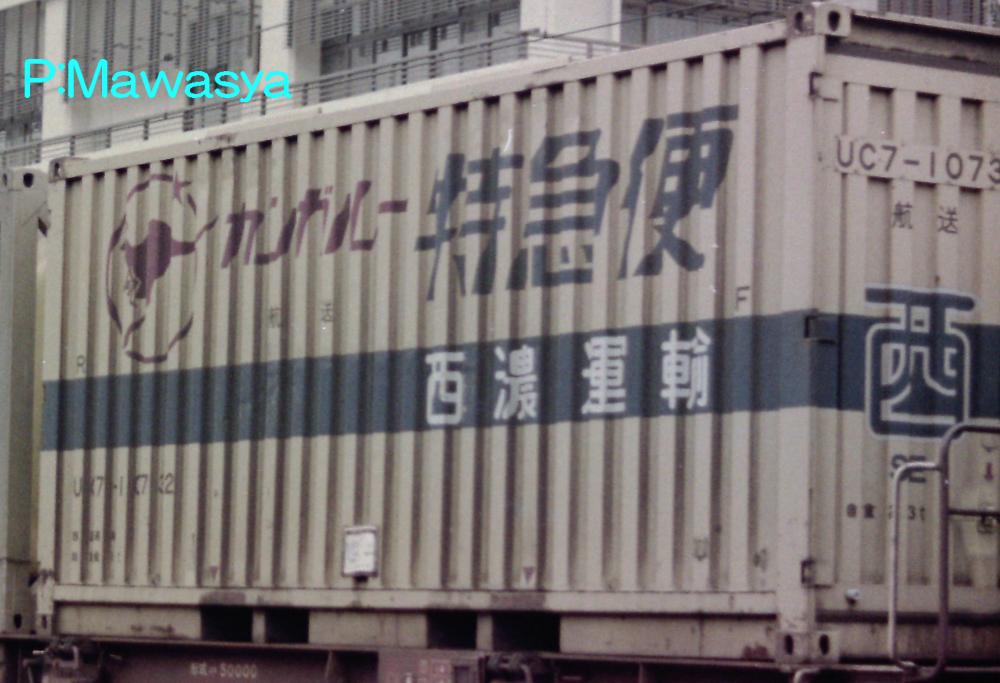 妻面のみに扉を設置した(トンネル状)珍しい個体の例です。前後に扉があり、前位及び後位を解り易くするため、前位はfront(前)のF、後位はrear(後)のRで表記しています。西濃運輸所有のコンテナは現在は写真左の「カンガルー便」ですが、かつては右のように「カンガルー○○便」と書かれており、その中で「特急便」は数が少なく、ちょっとしたレアコンテナでした。