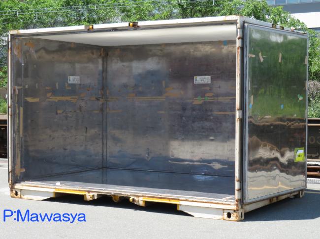 冷蔵コンテナの中の様子。断熱材等の分、内容積が小さくなってしまうデメリットがありますが、無くては困る存在です。かつては、棚があって氷塊やドライアイスを載せていました。