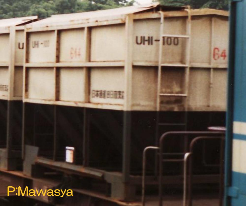 昭和52年に登場した形式で、UH1形式の拡大形式となります。荷役方式は自然落下式ですが、ダンプトラックのように傾斜をさせて取出します。