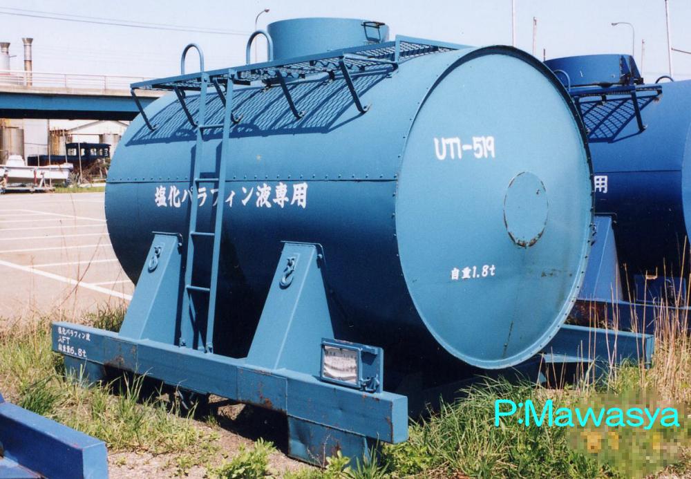 昭和53年に登場したタンクコンテナで、UT1形式の拡大形式にあたります。非危険物用のタンクコンテナで、液体の他、圧縮空気を用いた荷役方式の粉体用があります。