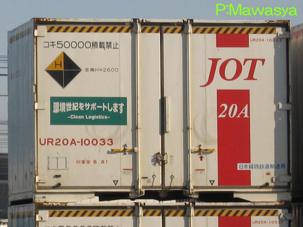 昭和62年、国鉄からJR貨物へ移行し、コンテナの形式は新しい記号や付番に変わりました。旧制度では非危険品と危険品の区分でしたが、新制度では内容積(無蓋コンテナは床面積)による形式になり、続くアルファベットや個体番号に大きさなどの仕様を表記する方法となっています。平成6年に試作コンテナの1番が登場。暫くはその状態が続きましたが、UR18A形式20000番代の後継形式として平成17年に20000番代が登場。翌年より0番代、10000番代と登場し、大量増備が始まりました。所有者はほぼ日本石油輸送で、様々な形態を登場させています。リースやレンタル扱いされ、一部の個体は借受会社のデザインになっているものもあります。