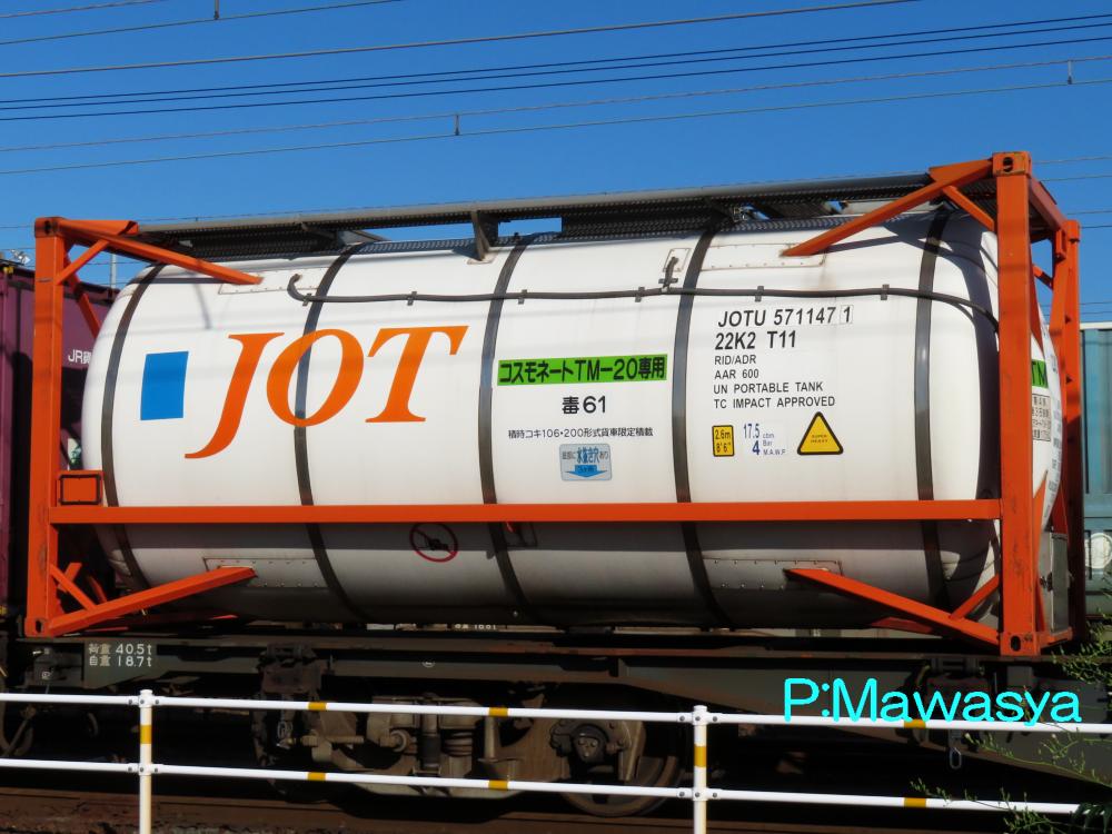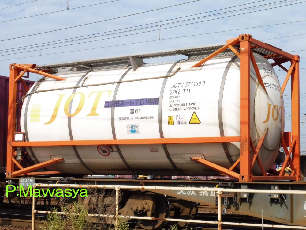 コスモネートTDI専用の17.5kLコンテナ。「コスモネート」とは三井化学のブランド名で、積荷の表記は「三井化学の製造するTDI」を言います。TDI(トルエンジイソシアネート)はウレタン製品等の原料です。