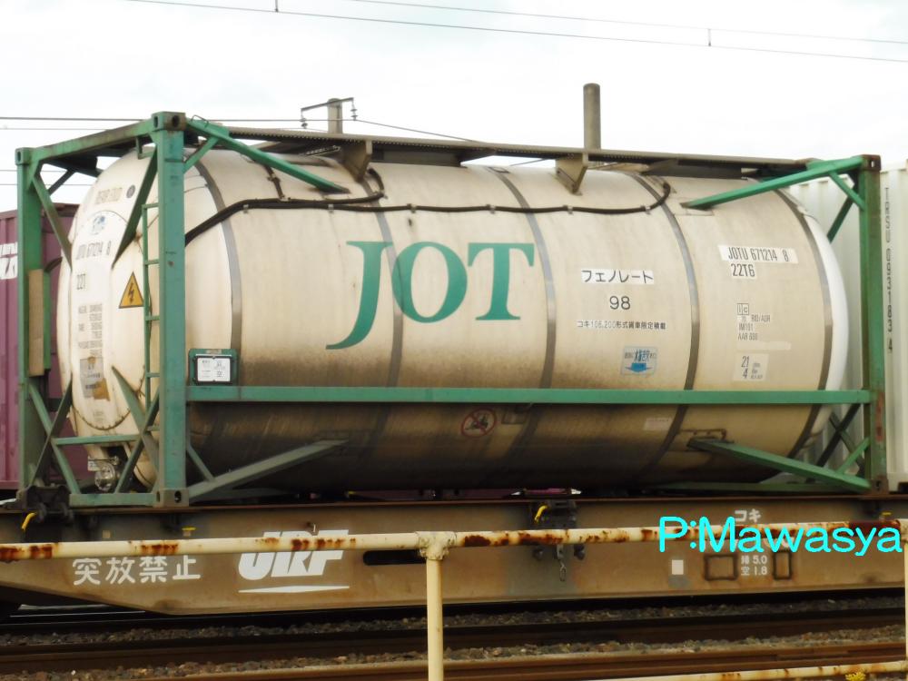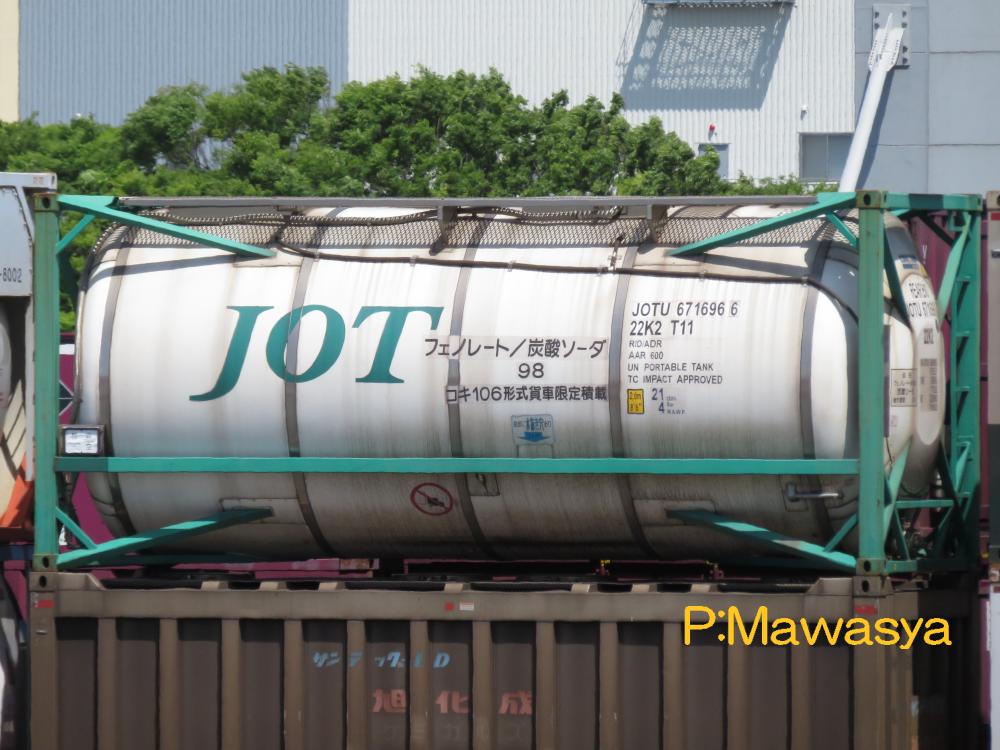 フェノレート専用の21kLコンテナ。化成品分類番号は98で、標記していない個体もあります。仕様コード(ISO6346)は22T6となっています。