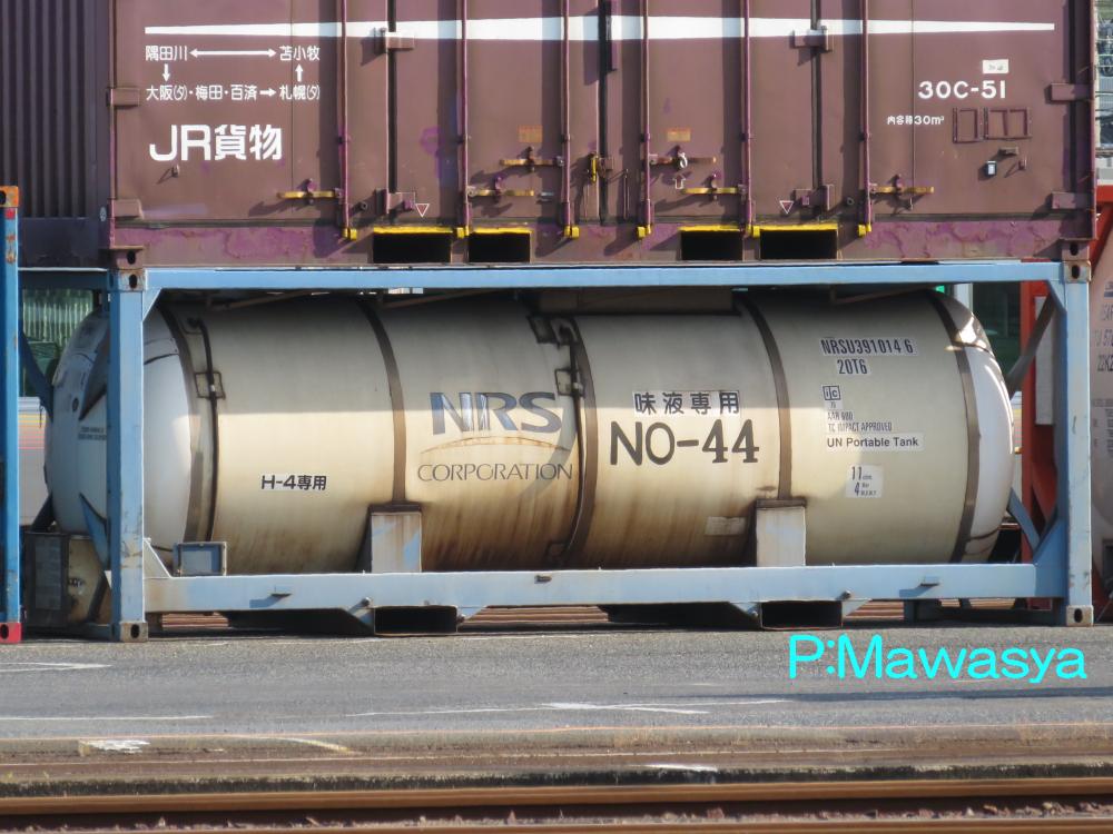 味液専用のコンテナ。しょうゆ、焼肉等のタレ等の原料を運びますが、小口輸送メインなのでしょう。10tフォークリフトでの荷役が可能な小型タイプが主力のようです。№が点けられており、中には「H-4専用」と積荷を指定されている個体もあります。仕様コード(ISO6346)は20Т6です。