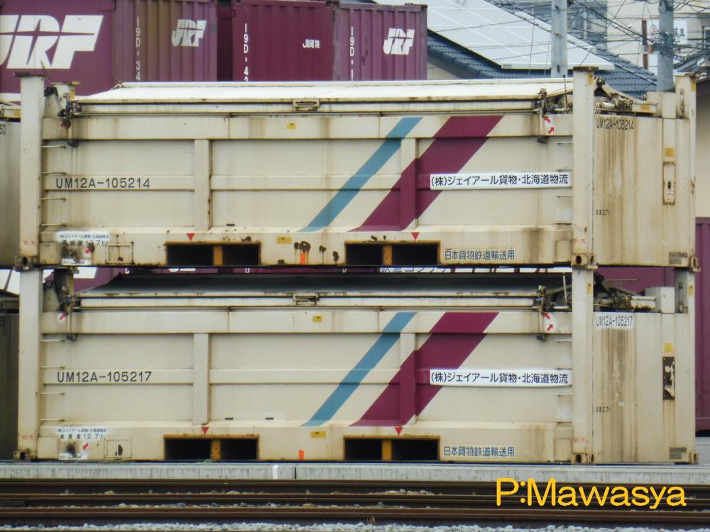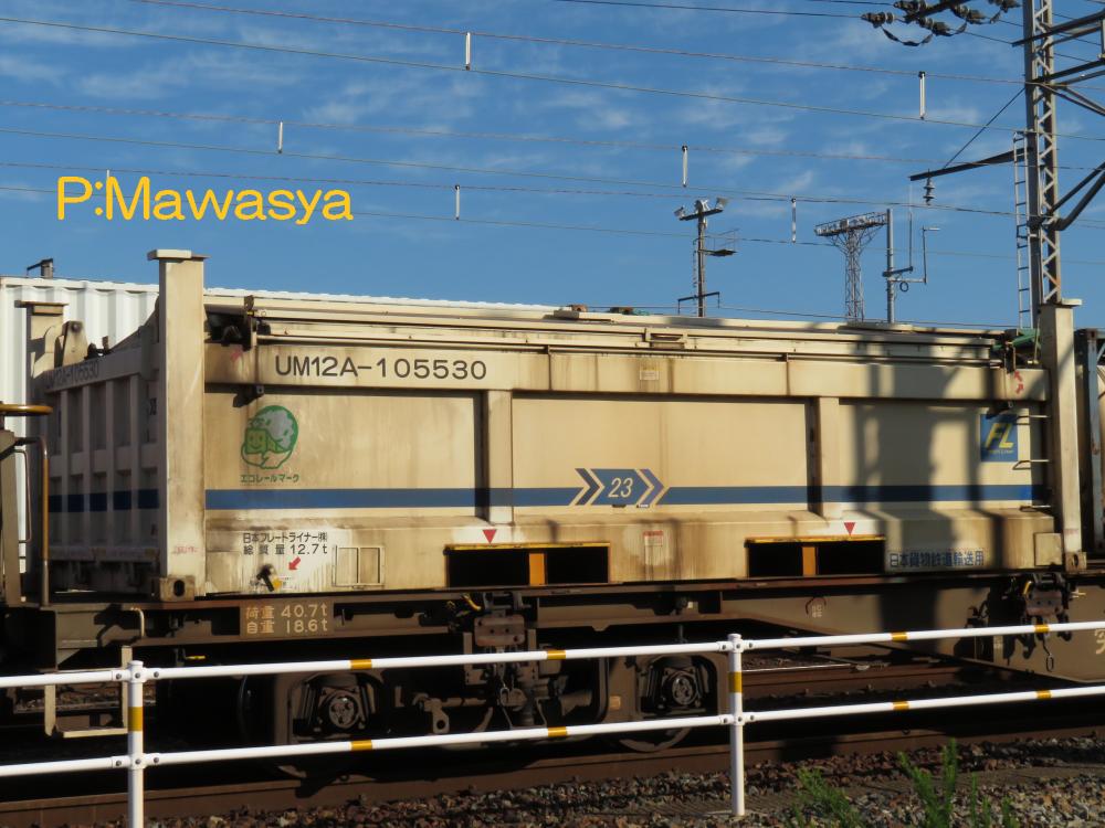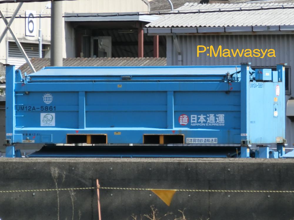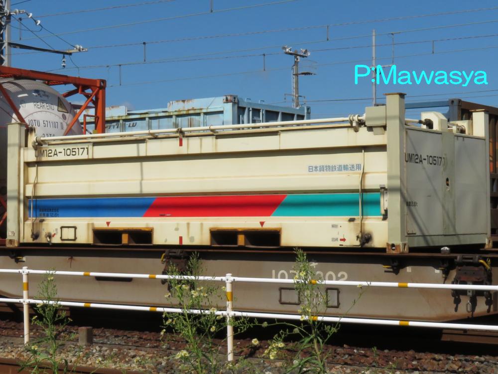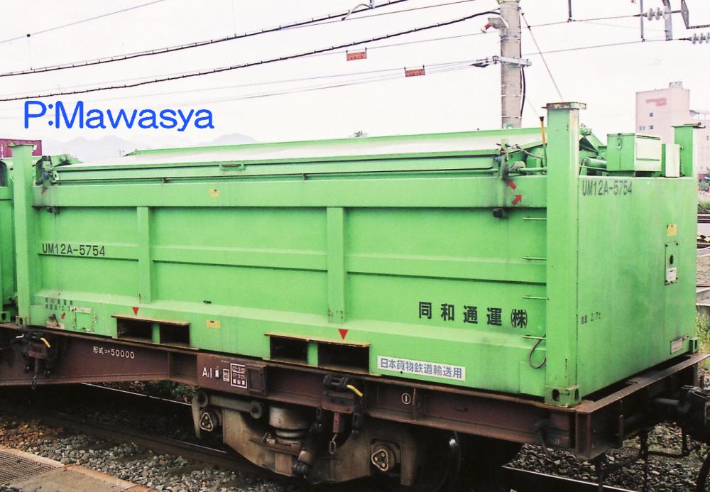 宇都宮貨物ターミナルが所有し、芳賀通運は借受会社となっています。クリーム色の新明和製の個体を所有しています。天板を受け止める戸当りゴムが中央の梁に設置されているタイプです。