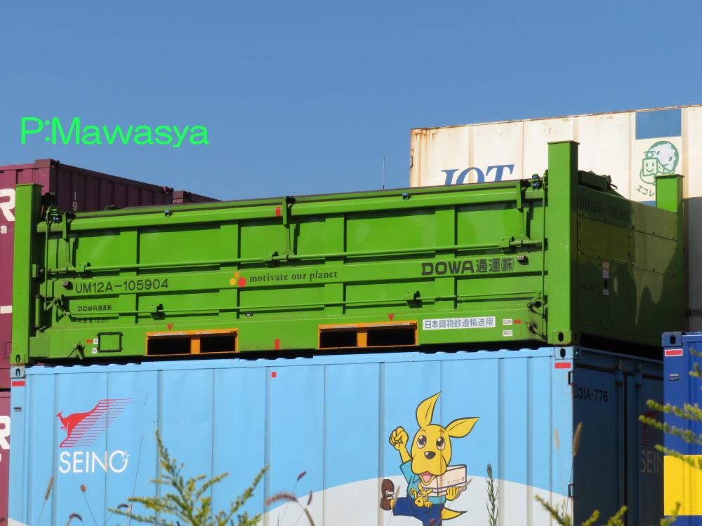 DOWA通運から転籍した個体で、1個だけのレアコンテナ。黄緑色から緑色に塗装変更が行われています。