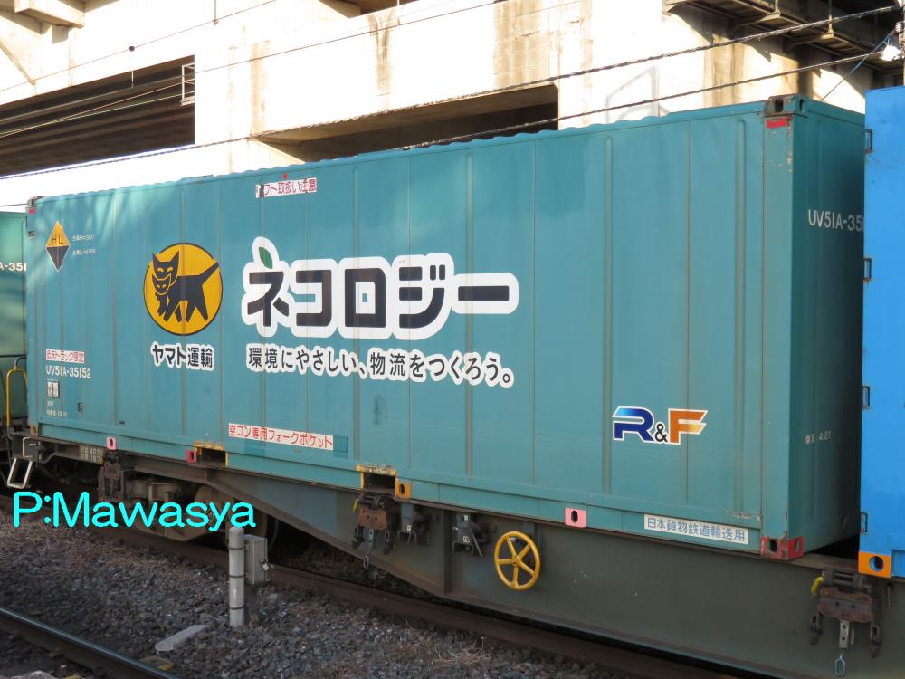 UV51A-35152:一見すると「ネコロジー」コンテナですが、写真右隅(1位側)に「R&F」という謎の文字が書かれています。幾つかの個体にあるようです。