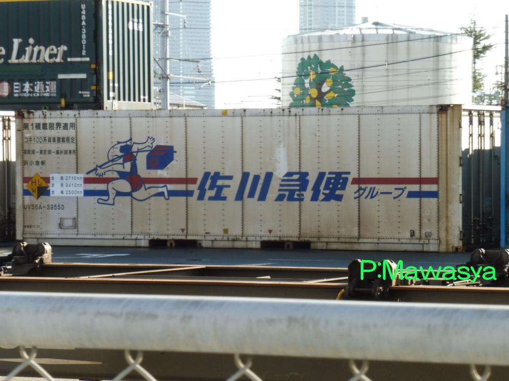 30001~30040番は初代のグループになります。コンテナにはフレートライナーの文字が書かれていますが、佐川急便が借受会社として使用しています。「コキ100系貨車限定」の注意書きとなっています。東急製となっています。