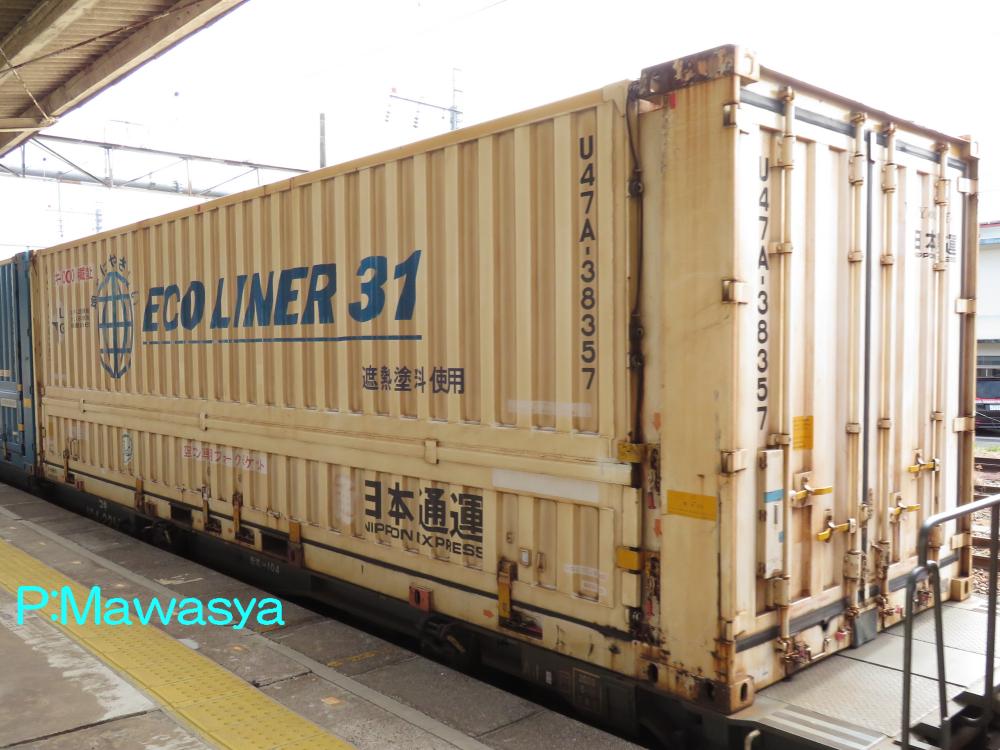 38000番代の多くで見られるのが日本通運所有の個体です。「ECO LINER(エコ ライナー) 31」と書かれていますが、「31」は31ftコンテナを意味し、10t級トラックと同等の大きさである事を意味しています。側二方、妻一方開きの構造で初めての31ftウイングコンテナとなっています。