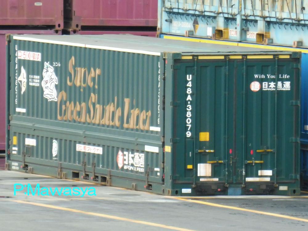 U48A-38079:38067~38079の13個が製作されました。スーパーグリーン・シャトル仕様最後のロットとなります。「コキ50000積載禁止」の標記が白地に赤文字のステッカーとなり、目立つようになっています。