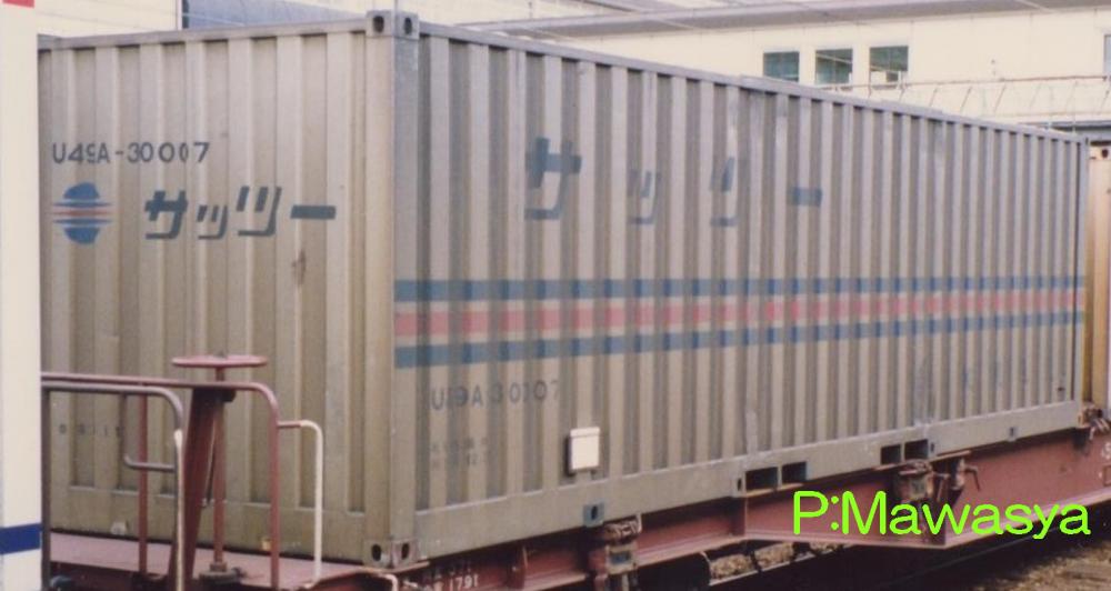 昭和62年、国鉄からJR貨物へ移行し、コンテナの形式は新しい記号や付番に変わりました。旧制度では非危険品と危険品の区分でしたが、新制度では内容積(無蓋コンテナは床面積)による形式になり、続くアルファベットや個体番号に大きさなどの仕様を表記する方法となっています。〇30000番代 30ft又は31ftコンテナを示す30000を原番号に足したコンテナ
