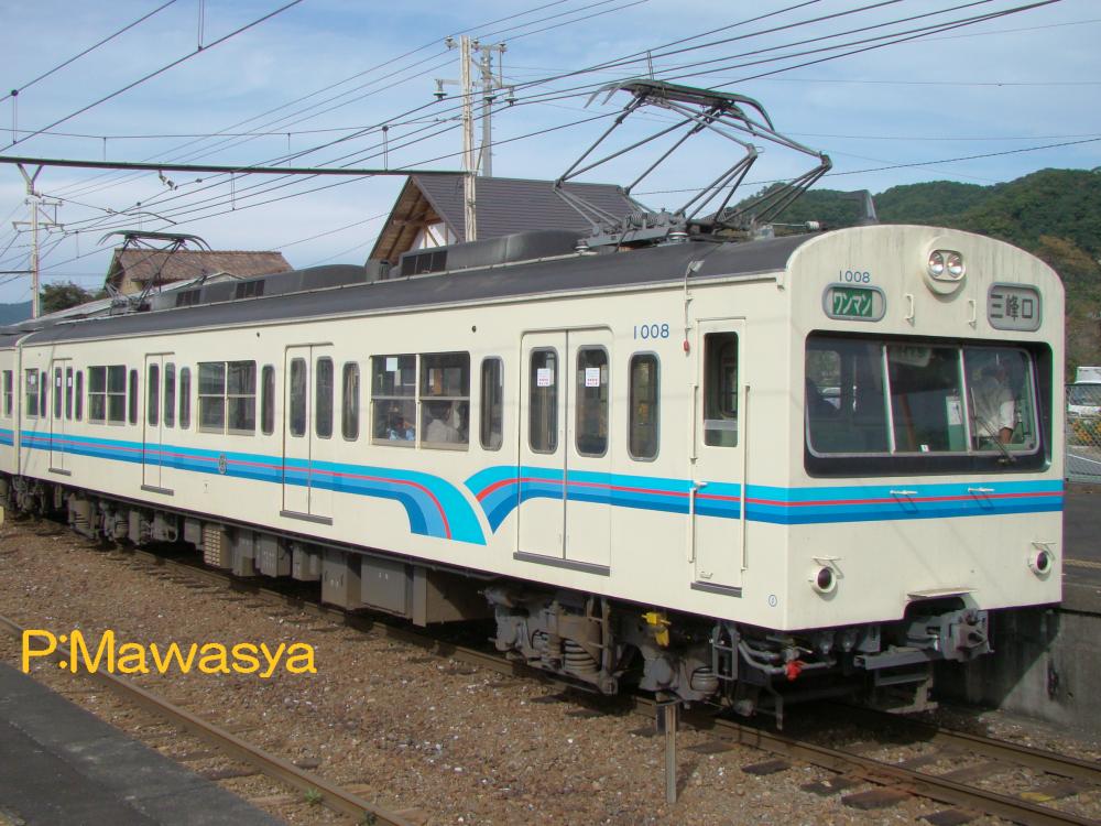 三峰口方のパンタグラフ付き制御電動車です。クモハ100形式を改造したもので、非冷房車時代は大きな変化はありませんでしたが、冷房化された際にパンタグラフを増設する等大きな変化が見られました。