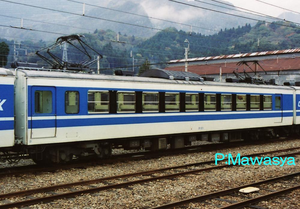 改造は車掌室の設置で、中央部にある扉にアルミサッシの窓が設置され、外観の特徴となっています。昭和62年の緩急車連結廃止を受け、昭和63年に形式消滅しています。
