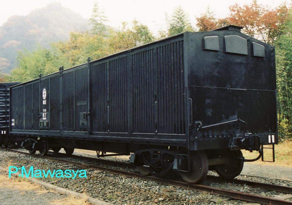 昭和43年に55両が製作された31t積みの有蓋車です。国鉄ワキ5000形式の後期車と同一設計で、台車はTR209B形式と異なっている他、塗装色も黒色となっています。